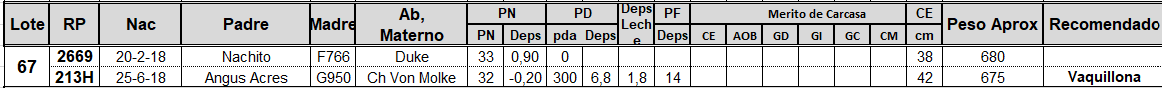 LOTE 67, TOROS PC Lote Anterior Volver al remate Lote Siguiente Información del Lote Animales del Lote Pedigree Ofertar Contacto Buenos Aires - San Andrés de Giles Información del Lote Identificador: #80754 Cantidad 2 Categoría Toros PC Raza Angus Negro Provincia Buenos Aires Ubicación San Andrés de Giles Plazo Consultar Buenos Aires - San Andrés de Giles Ofertar Aún no tiene ofertas Animales: 2669 213H Plazo: Contado 7 y 14 días 15 días 30 y 60 del remate 20 días 21 dias 30 del remate 30 días 30 y 45 dias 40 días 25 días del remate 45 días 30 y 60 días 25 y 55 días 0, 30 y 60 días 25 días 55 días 60 días 60, 90 y 120 días 30, 60 y 90 días 70 días 60 y 90 días 35 y 65 días 30 y 50 días 25 y 40 días 30 y 40 días 90 días 50 y 100 días 120 días 60 días del remate 30 y 45 Días del Remate 30 y 45 Días 20/50 y 80 días 30 días del remate 30 y 60 días del remate 30, 60 y 90 días del remate 30 y 45 Días 50 y 80 días 20 y 50 días 45 Días del Remate 17 días 15 - 50 días 28 días 30-60-90 O 60 25-55-85 25-45 días 18 días Desde el Remate 150 días 180 días 25, 55 y 85 días 30, 60, 90, 120 y 150 días 30, 60, 90 y 120 días 0, 30, 60 y 90 dias 20, 40 y 60 días 6 Cuotas Otro Consultar Su Oferta en $: − + Step: -5.000,00 / +5.000,00 Programar puja hasta: Programar puja hasta Aumentar puja programada 145000 235000 **Oferta al bulto Iniciar sesión para ofertar Ofertar Listado de preofertas $ Fecha/Hora Estado Este lote aún no tiene preofertas. 56 Visualizaciones ClicData Animales del Lote RP 2669 213H PRECIO BASE 0.00 0.00 RP 2669 PRECIO BASE 0.00 RP 213H PRECIO BASE 0.00 Pedigree Contacto Comercial a cargo: Pestalardo Empresa: GANADERA AZUL SRL Nombre*: E-mail* : Mensaje Enviar Registrese gratis Este contenido Exclusivo está disponible sólo para usuarios registrados Ingresar