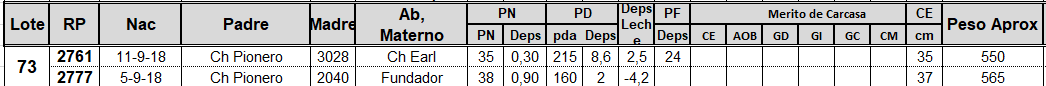 LOTE 73, TOROS PC Lote Anterior Volver al remate Lote Siguiente Información del Lote Animales del Lote Pedigree Ofertar Contacto Buenos Aires - San Andrés de Giles Información del Lote Identificador: #80765 Cantidad 2 Categoría Toros PC Raza Angus Negro Provincia Buenos Aires Ubicación San Andrés de Giles Plazo Consultar Buenos Aires - San Andrés de Giles Ofertar Aún no tiene ofertas Animales: 2761 2777 Plazo: Contado 7 y 14 días 15 días 30 y 60 del remate 20 días 21 dias 30 del remate 30 días 30 y 45 dias 40 días 25 días del remate 45 días 30 y 60 días 25 y 55 días 0, 30 y 60 días 25 días 55 días 60 días 60, 90 y 120 días 30, 60 y 90 días 70 días 60 y 90 días 35 y 65 días 30 y 50 días 25 y 40 días 30 y 40 días 90 días 50 y 100 días 120 días 60 días del remate 30 y 45 Días del Remate 30 y 45 Días 20/50 y 80 días 30 días del remate 30 y 60 días del remate 30, 60 y 90 días del remate 30 y 45 Días 50 y 80 días 20 y 50 días 45 Días del Remate 17 días 15 - 50 días 28 días 30-60-90 O 60 25-55-85 25-45 días 18 días Desde el Remate 150 días 180 días 25, 55 y 85 días 30, 60, 90, 120 y 150 días 30, 60, 90 y 120 días 0, 30, 60 y 90 dias 20, 40 y 60 días 6 Cuotas Otro Consultar Su Oferta en $: − + Step: -5.000,00 / +5.000,00 Programar puja hasta: Programar puja hasta Aumentar puja programada 145000 235000 **Oferta al bulto Iniciar sesión para ofertar Ofertar Listado de preofertas $ Fecha/Hora Estado Este lote aún no tiene preofertas. 38 Visualizaciones ClicData Animales del Lote RP 2761 2777 PRECIO BASE 0.00 0.00 RP 2761 PRECIO BASE 0.00 RP 2777 PRECIO BASE 0.00 Pedigree Contacto Comercial a cargo: Pestalardo Empresa: GANADERA AZUL SRL Nombre*: E-mail* : Mensaje Enviar Registrese gratis Este contenido Exclusivo está disponible sólo para usuarios registrados Ingresar