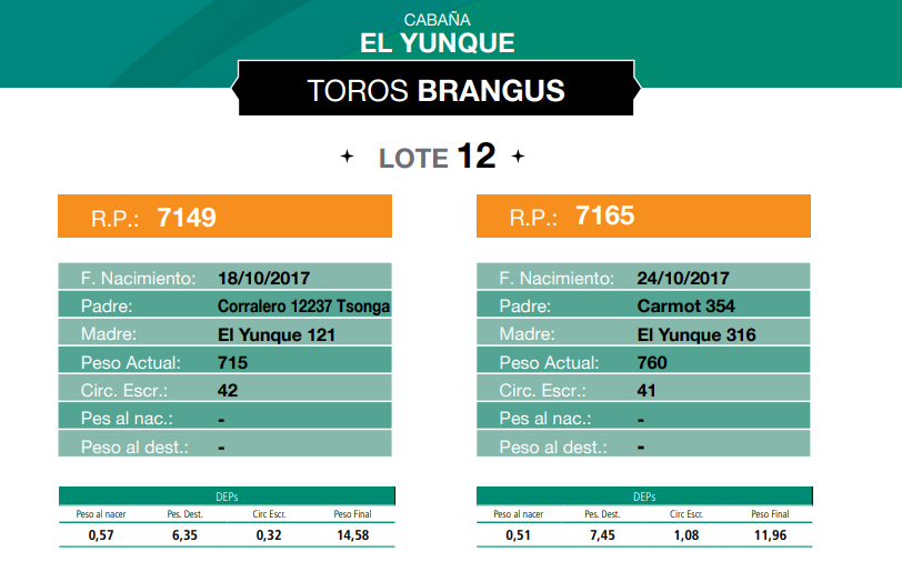 LOTE 12, TOROS BRANGUS CABAÑA EL YUNQUE 🔥 🔥 🔥 Lote Anterior Volver al remate Lote Siguiente Información del Lote Animales del Lote Pedigree Ofertar Contacto Chaco - Información del Lote Identificador: #82085 Cantidad 2 Categoría Toros Raza Brangus negro Provincia Chaco Plazo Consultar Chaco - Ofertar Aún no tiene ofertas Animales: 7149 7165 Plazo: Contado 7 y 14 días 15 días 30 y 60 del remate 20 días 21 dias 30 del remate 30 días 30 y 45 dias 40 días 25 días del remate 45 días 30 y 60 días 25 y 55 días 0, 30 y 60 días 25 días 55 días 60 días 60, 90 y 120 días 30, 60 y 90 días 70 días 60 y 90 días 35 y 65 días 30 y 50 días 25 y 40 días 30 y 40 días 90 días 50 y 100 días 120 días 60 días del remate 30 y 45 Días del Remate 30 y 45 Días 20/50 y 80 días 30 días del remate 30 y 60 días del remate 30, 60 y 90 días del remate 30 y 45 Días 50 y 80 días 20 y 50 días 45 Días del Remate 17 días 15 - 50 días 28 días 30-60-90 O 60 25-55-85 25-45 días 18 días Desde el Remate 150 días 180 días 25, 55 y 85 días 30, 60, 90, 120 y 150 días 30, 60, 90 y 120 días 0, 30, 60 y 90 dias 20, 40 y 60 días 6 Cuotas Otro Consultar Su Oferta en $: − + Step: -0,01 / +0,01 Programar puja hasta: Programar puja hasta Aumentar puja programada 180000.02 180000.2 ** Iniciar sesión para ofertar Ofertar Listado de preofertas $ Fecha/Hora Estado Este lote aún no tiene preofertas. 204 Visualizaciones ClicData Animales del Lote RP 7149 7165 PRECIO BASE 0.00 0.00 RP 7149 PRECIO BASE 0.00 RP 7165 PRECIO BASE 0.00 Pedigree Contacto Comercial a cargo: Santiago Usandizaga Empresa: CASA USANDIZAGA S.A. Nombre*: E-mail* : Mensaje Enviar Registrese gratis Este contenido Exclusivo está disponible sólo para usuarios registrados Ingresar