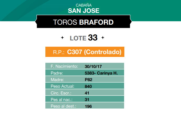 LOTE 33, TORO BRAFORD CABAÑA SAN JOSE Lote Anterior Volver al remate Lote Siguiente Información del Lote Animal Pedigree Ofertar Contacto Chaco - Información del Lote Identificador: #82106 Categoría Toros Raza Braford Provincia Chaco Plazo Consultar Chaco - Ofertar Aún no tiene ofertas Animales: C307 (Controlado) Plazo: Contado 7 y 14 días 15 días 30 y 60 del remate 20 días 21 dias 30 del remate 30 días 30 y 45 dias 40 días 25 días del remate 45 días 30 y 60 días 25 y 55 días 0, 30 y 60 días 25 días 55 días 60 días 60, 90 y 120 días 30, 60 y 90 días 70 días 60 y 90 días 35 y 65 días 30 y 50 días 25 y 40 días 30 y 40 días 90 días 50 y 100 días 120 días 60 días del remate 30 y 45 Días del Remate 30 y 45 Días 20/50 y 80 días 30 días del remate 30 y 60 días del remate 30, 60 y 90 días del remate 30 y 45 Días 50 y 80 días 20 y 50 días 45 Días del Remate 17 días 15 - 50 días 28 días 30-60-90 O 60 25-55-85 25-45 días 18 días Desde el Remate 150 días 180 días 25, 55 y 85 días 30, 60, 90, 120 y 150 días 30, 60, 90 y 120 días 0, 30, 60 y 90 dias 20, 40 y 60 días 6 Cuotas Otro Consultar Su Oferta en $: − + Step: -0,01 / +0,01 Programar puja hasta: Programar puja hasta Aumentar puja programada 170000.02 170000.2 ** Iniciar sesión para ofertar Ofertar Listado de preofertas $ Fecha/Hora Estado Este lote aún no tiene preofertas. 81 Visualizaciones ClicData Animal RP C307 (Controlado) PRECIO BASE 0.00 RP C307 (Controlado) PRECIO BASE 0.00 Pedigree Contacto Comercial a cargo: Santiago Usandizaga Empresa: CASA USANDIZAGA S.A. Nombre*: E-mail* : Mensaje Enviar Registrese gratis Este contenido Exclusivo está disponible sólo para usuarios registrados Ingresar