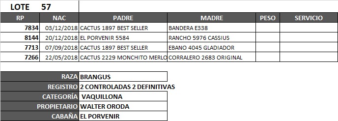 LOTE 57, VAQUILLONA BRANGUS REG C. (2D) Lote Anterior Volver al remate Lote Siguiente Información del Lote Animales del Lote Pedigree Ofertar Contacto Córdoba - Jesús María Información del Lote Identificador: #83475 Cantidad 4 Categoría Vaquillonas Raza Brangus negro Provincia Córdoba Ubicación Jesús María Plazo Consultar Propietario EL PORVENIR Córdoba - Jesús María Ofertar Aún no tiene ofertas Animales: 7834 8144 7713 7266 Plazo: Contado 7 y 14 días 15 días 30 y 60 del remate 20 días 21 dias 30 del remate 30 días 30 y 45 dias 40 días 25 días del remate 45 días 30 y 60 días 25 y 55 días 0, 30 y 60 días 25 días 55 días 60 días 60, 90 y 120 días 30, 60 y 90 días 70 días 60 y 90 días 35 y 65 días 30 y 50 días 25 y 40 días 30 y 40 días 90 días 50 y 100 días 120 días 60 días del remate 30 y 45 Días del Remate 30 y 45 Días 20/50 y 80 días 30 días del remate 30 y 60 días del remate 30, 60 y 90 días del remate 30 y 45 Días 50 y 80 días 20 y 50 días 45 Días del Remate 17 días 15 - 50 días 28 días 30-60-90 O 60 25-55-85 25-45 días 18 días Desde el Remate 150 días 180 días 25, 55 y 85 días 30, 60, 90, 120 y 150 días 30, 60, 90 y 120 días 0, 30, 60 y 90 dias 20, 40 y 60 días 6 Cuotas Otro Consultar Su Oferta en : − + Step: -5.000,00 / +5.000,00 Programar puja hasta: Programar puja hasta Aumentar puja programada 130000 220000 **Oferta al bulto Iniciar sesión para ofertar Ofertar Listado de preofertas Fecha/Hora Estado Este lote aún no tiene preofertas. 147 Visualizaciones ClicData Animales del Lote RP 7834 8144 7713 7266 PRECIO BASE 0.00 0.00 0.00 0.00 0.00 RP 7834 PRECIO BASE 0.00 RP 8144 PRECIO BASE 0.00 RP 7713 PRECIO BASE 0.00 RP 7266 PRECIO BASE 0.00 RP PRECIO BASE 0.00 Pedigree Contacto Empresa: CONSIGNACIONES CÓRDOBA S.A. Nombre*: E-mail* : Mensaje Enviar Registrese gratis Este contenido Exclusivo está disponible sólo para usuarios registrados Ingresar