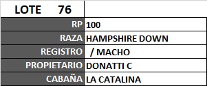 LOTE 76, CARNERO HAMPSHIRE DOWN Lote Anterior Volver al remate Lote Siguiente Ficha Contacto Ofertar Córdoba - Jesús María Ficha del Lote Identificador: #83496 Categoría: Carneros Pedigree Plazo Consultar Raza Hampshire Down Información Genética RP 100 RP 100 PRECIO BASE 0.00 Córdoba - Jesús María Ofertar Aún no tiene ofertas Animales: 100 Plazo: Contado 7 y 14 días 15 días 30 y 60 del remate 20 días 21 dias 30 del remate 30 días 30 y 45 dias 40 días 25 días del remate 45 días 30 y 60 días 25 y 55 días 0, 30 y 60 días 25 días 55 días 60 días 60, 90 y 120 días 30, 60 y 90 días 70 días 60 y 90 días 35 y 65 días 30 y 50 días 25 y 40 días 30 y 40 días 90 días 50 y 100 días 120 días 60 días del remate 30 y 45 Días del Remate 30 y 45 Días 20/50 y 80 días 30 días del remate 30 y 60 días del remate 30, 60 y 90 días del remate 30 y 45 Días 50 y 80 días 20 y 50 días 45 Días del Remate 17 días 15 - 50 días 28 días 30-60-90 O 60 25-55-85 25-45 días 18 días Desde el Remate 150 días 180 días 25, 55 y 85 días 30, 60, 90, 120 y 150 días 30, 60, 90 y 120 días 0, 30, 60 y 90 dias 20, 40 y 60 días 6 Cuotas Otro Consultar Su Oferta en : − + Step: -5.000,00 / +5.000,00 Programar puja hasta: Programar puja hasta Aumentar puja programada 50000 140000 **Oferta al kg Iniciar sesión para ofertar Ofertar Listado de preofertas Fecha/Hora Estado Este lote aún no tiene preofertas. 71 Visualizaciones ClicData Contacto Empresa: CONSIGNACIONES CÓRDOBA S.A. Nombre*: Teléfono* : E-mail* : Mensaje Enviar Registrese gratis Este contenido Exclusivo está disponible sólo para usuarios registrados Ingresar