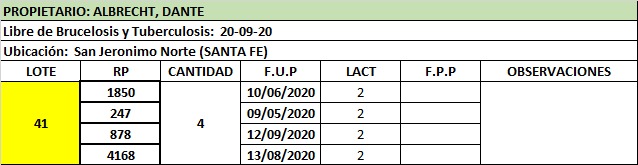 LOTE 41, VACA EN PRODUCCION 🔥 🔥 🔥 Lote Anterior Volver al remate Lote Siguiente Ficha Contacto Santa Fe - San Jerónimo N. Ficha del Lote Identificador: #93405 Cantidad: 4 Categoría: Vacas en produccion Pedigree Plazo 30, 60, 90 y 120 días Raza Holando Santa Fe - San Jerónimo N. © OpenStreetMap 153 Visualizaciones ClicData Contacto Comercial a cargo: Julio Empresa: Cooperativa Agrícola Ganadera Guillermo Lehmann Nombre*: Teléfono* : E-mail* : Mensaje Enviar Registrese gratis Este contenido Exclusivo está disponible sólo para usuarios registrados Ingresar