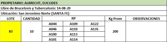 LOTE 83, VAQUILLONA P/ ENTORAR Lote Anterior Volver al remate Lote Siguiente Ficha Contacto Santa Fe - San Jerónimo N. Ficha del Lote Identificador: #93425 Cantidad: 10 Categoría: Vaquillonas P/ entorar Pedigree Plazo 30, 60, 90 y 120 días Raza Holando Santa Fe - San Jerónimo N. © OpenStreetMap 59 Visualizaciones ClicData Contacto Comercial a cargo: Julio Empresa: Cooperativa Agrícola Ganadera Guillermo Lehmann Nombre*: Teléfono* : E-mail* : Mensaje Enviar Registrese gratis Este contenido Exclusivo está disponible sólo para usuarios registrados Ingresar
