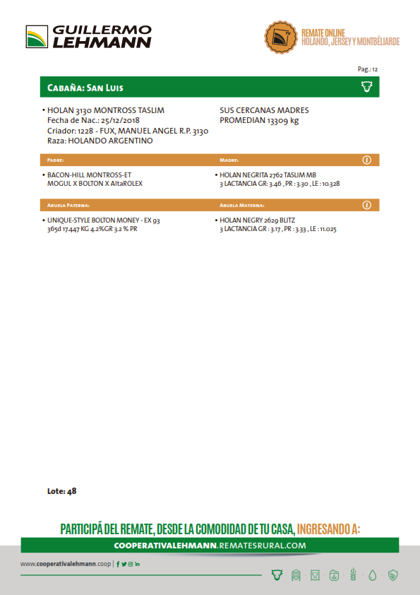 LOTE 48, TORO HOLANDO Lote Anterior Volver al remate Lote Siguiente Ficha Contacto Santa Fe - Ficha del Lote Identificador: #93437 Categoría: Toros Pedigree Plazo 30, 60, 90 y 120 días Raza Holando 79 Visualizaciones ClicData Contacto Comercial a cargo: Julio Empresa: Cooperativa Agrícola Ganadera Guillermo Lehmann Nombre*: Teléfono* : E-mail* : Mensaje Enviar Registrese gratis Este contenido Exclusivo está disponible sólo para usuarios registrados Ingresar