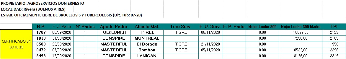 LOTE 15, VACAS EN PRODUCCION Lote Anterior Volver al remate Lote Siguiente Ficha Contacto Buenos Aires - Rivera Ficha del Lote Identificador: #95668 Cantidad: 5 Categoría: Vacas en produccion Estado: Excelente Pedigree Plazo 30, 60, 90 y 120 días Raza Holando Argentino Buenos Aires - Rivera 199 Visualizaciones ClicData Contacto Comercial a cargo: Alan Zbrun Empresa: Cooperativa Agrícola Ganadera Guillermo Lehmann Nombre*: Teléfono* : E-mail* : Mensaje Enviar Registrese gratis Este contenido Exclusivo está disponible sólo para usuarios registrados Ingresar