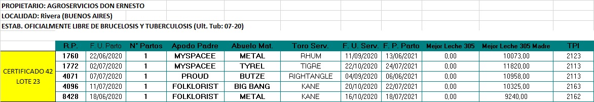 LOTE 23, VACAS EN PRODUCCION Lote Anterior Volver al remate Lote Siguiente Ficha Contacto Buenos Aires - Rivera Ficha del Lote Identificador: #95675 Cantidad: 5 Categoría: Vacas en produccion Estado: Excelente Pedigree Plazo 30, 60, 90 y 120 días Raza Holando Argentino Buenos Aires - Rivera 182 Visualizaciones ClicData Contacto Comercial a cargo: Alan Zbrun Empresa: Cooperativa Agrícola Ganadera Guillermo Lehmann Nombre*: Teléfono* : E-mail* : Mensaje Enviar Registrese gratis Este contenido Exclusivo está disponible sólo para usuarios registrados Ingresar