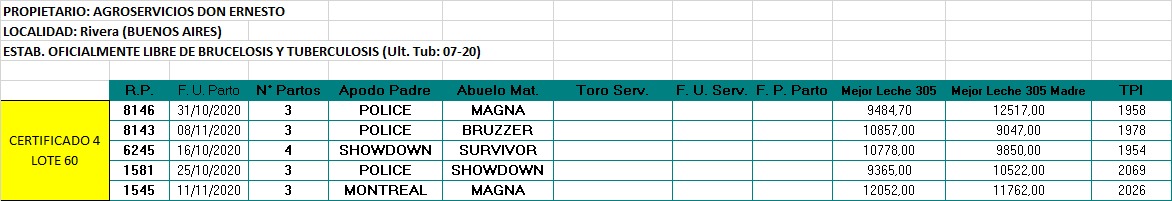LOTE 60, VACAS EN PRODUCCION Lote Anterior Volver al remate Lote Siguiente Ficha Contacto Buenos Aires - Rivera Ficha del Lote Identificador: #95714 Cantidad: 5 Categoría: Vacas en produccion Estado: Excelente Pedigree Plazo 30, 60, 90 y 120 días Raza Holando Argentino Buenos Aires - Rivera 139 Visualizaciones ClicData Contacto Comercial a cargo: Alan Zbrun Empresa: Cooperativa Agrícola Ganadera Guillermo Lehmann Nombre*: Teléfono* : E-mail* : Mensaje Enviar Registrese gratis Este contenido Exclusivo está disponible sólo para usuarios registrados Ingresar