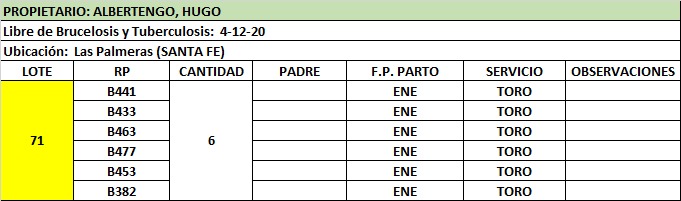 LOTE 71, VAQUILLONA PREÑADA Lote Anterior Volver al remate Lote Siguiente Ficha Contacto Santa Fe - Las Palmeras Ficha del Lote Identificador: #96646 Cantidad: 6 Categoría: Vaquillonas preñadas Estado: Excelente Pedigree Plazo 30, 60, 90 y 120 días Raza Holando Argentino Santa Fe - Las Palmeras 91 Visualizaciones ClicData Contacto Comercial a cargo: Alan Zbrun Empresa: Cooperativa Agrícola Ganadera Guillermo Lehmann Nombre*: Teléfono* : E-mail* : Mensaje Enviar Registrese gratis Este contenido Exclusivo está disponible sólo para usuarios registrados Ingresar