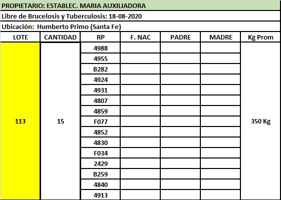 LOTE 113, VAQUILLONA P/ENTORAR Lote Anterior Volver al remate Lote Siguiente Ficha Contacto Santa Fe - Humberto 1º Ficha del Lote Identificador: #96782 Cantidad: 15 Categoría: Vaquillonas P/ entorar Estado: Excelente Pedigree Plazo 30, 60, 90 y 120 días Raza Holando Argentino Santa Fe - Humberto 1º 108 Visualizaciones ClicData Contacto Comercial a cargo: Alan Zbrun Empresa: Cooperativa Agrícola Ganadera Guillermo Lehmann Nombre*: Teléfono* : E-mail* : Mensaje Enviar Registrese gratis Este contenido Exclusivo está disponible sólo para usuarios registrados Ingresar